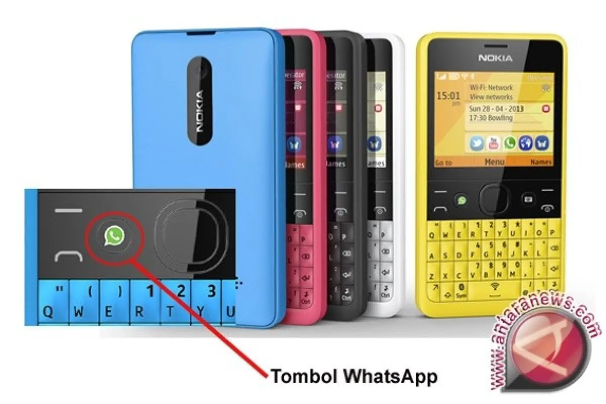Jakarta (Antara Kalbar) - Perusahaan Finlandia, Nokia, baru-baru ini mengenalkan Nokia Asha 210, ponsel pertama yang dilengkapi tombol WhatsApp di kiri muka perangkat, membuat aplikasi pesan instan itu semakin mudah diakses dibanding sebelumnya.
