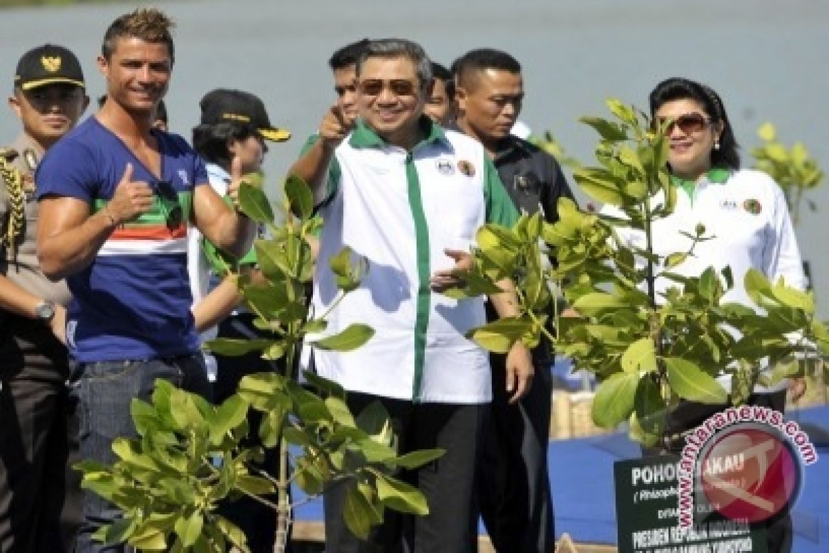 Kedatangan bintang Real Madrid asal Portugal itu untuk menanam bakau bersama Presiden Susilo Bambang Yudhoyono dan Menteri Kehutanan Zulkili Hasan.
