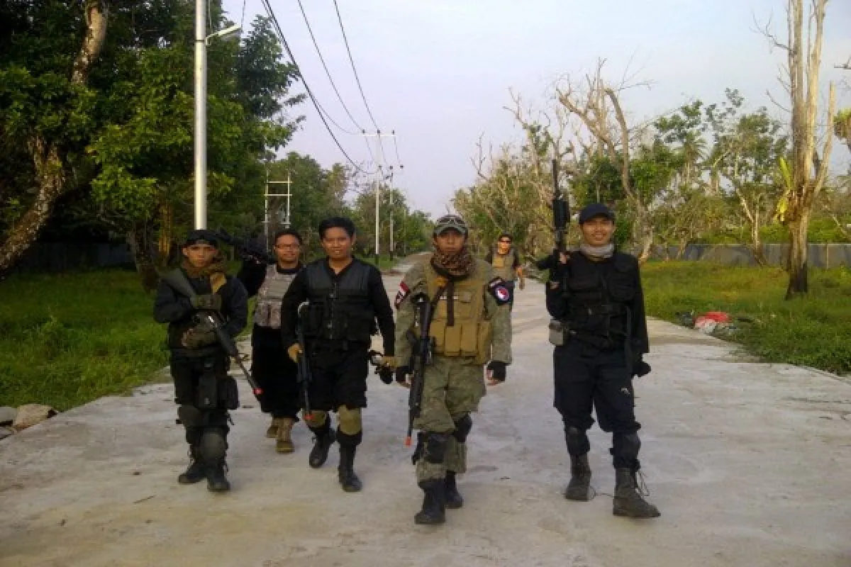 Hampir dua puluh pria berpakaian lengkap army look berkumpul di halaman luas sebuah komplek pertokoan yang dikelilingi pepohonan dan dipagari tembok antara pemukiman warga kawasan Jalan Ampera, Pontianak Kota, akhir pekan lalu.