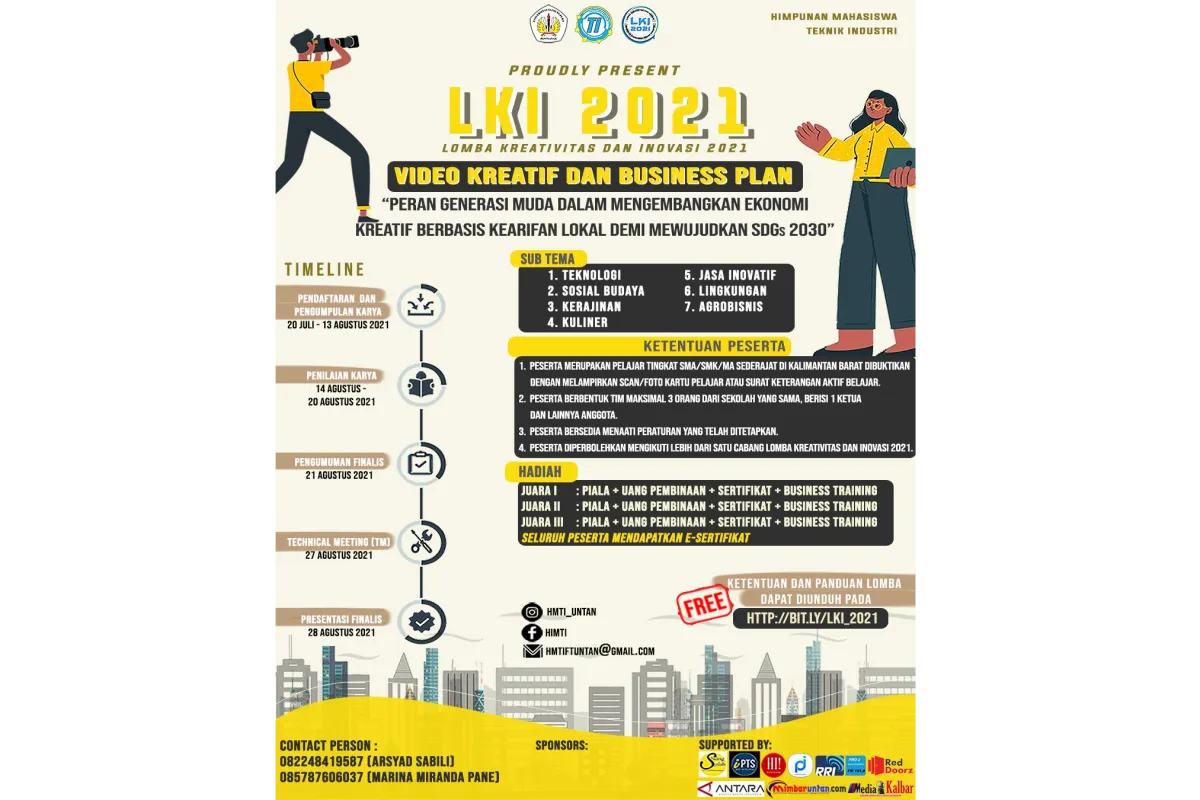 Ia menjelaskan bahwa Lomba Kreativitas dan Inovasi 2021 ini akan dilaksanakan pada 28 Agustus mendatang dengan dua kategori business plan dan lomba video kreatif .