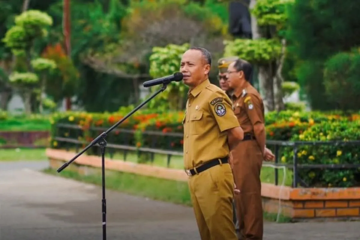 Ketapang (ANTARA) - Sekretaris Daerah (Sekda) Kabupaten Ketapang, Repalianto memimpin apel rutin di halaman Kantor Bupati Ketapang, Senin. Pada apel ini, Sekda mengingatkan pentingnya disiplin kerja aparatur sipil Negara (ASN) dan pegawai lainnya di lingkungan Setda Ketapang.