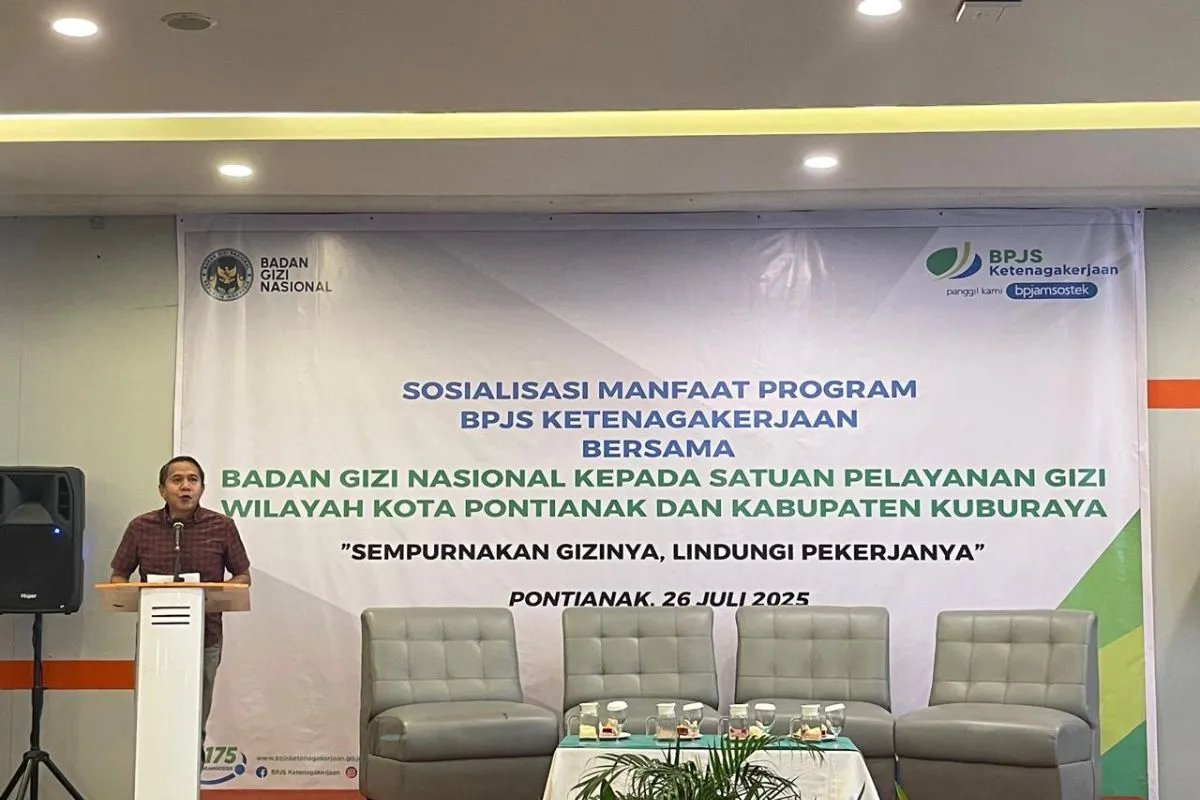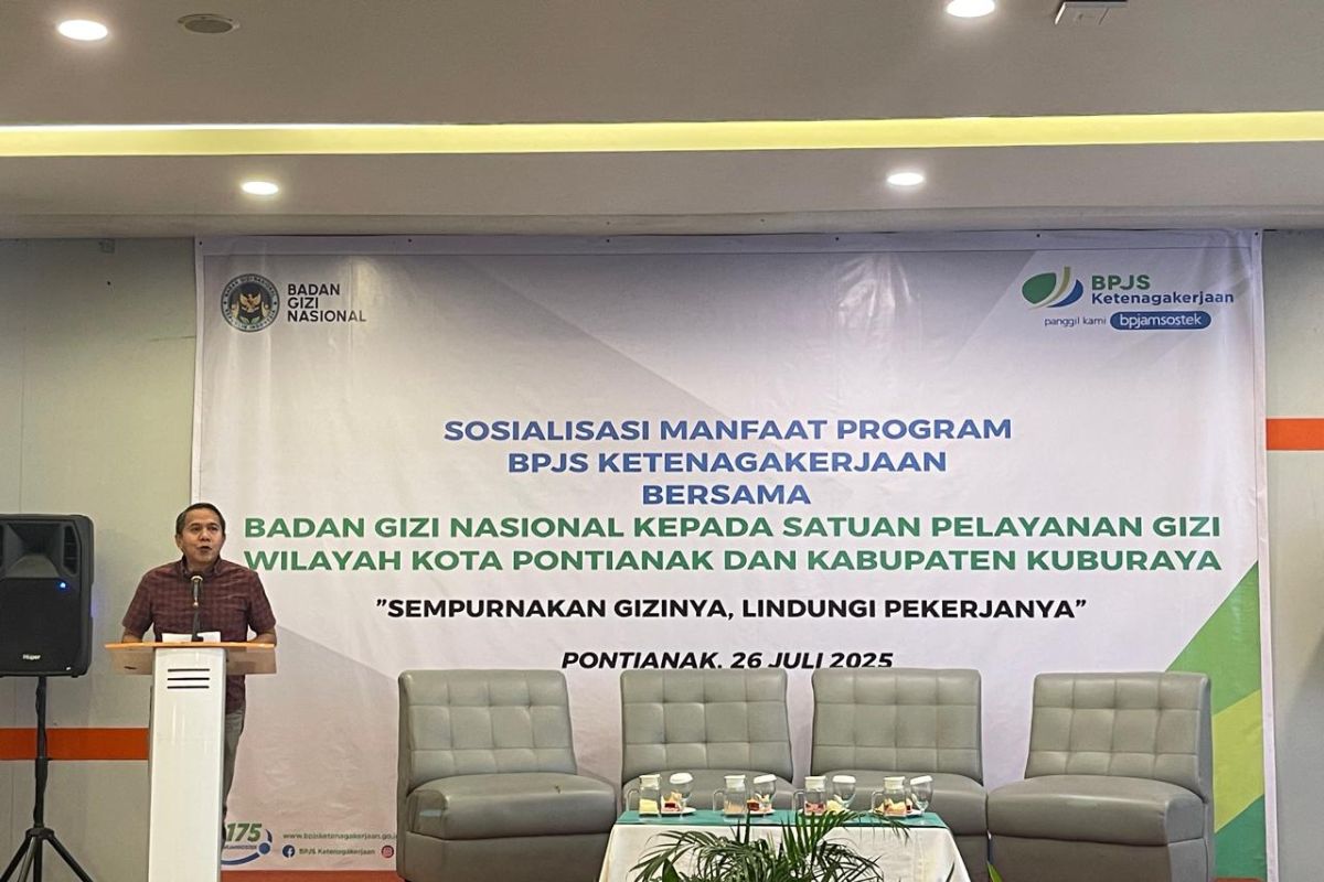 Kepala BPJS Ketenagakerja Kalbar Suhuri mengakui dukungan optimalisasi kepesertaan aktif Jaminan Sosial Ketenagakerjaan bagi pekeria di Satuan Pelayanan Pemenuhan Gizi (SPPG] dalam pelaksanaan program MBG diaplikasikan dalam perjanjian kerja sama.