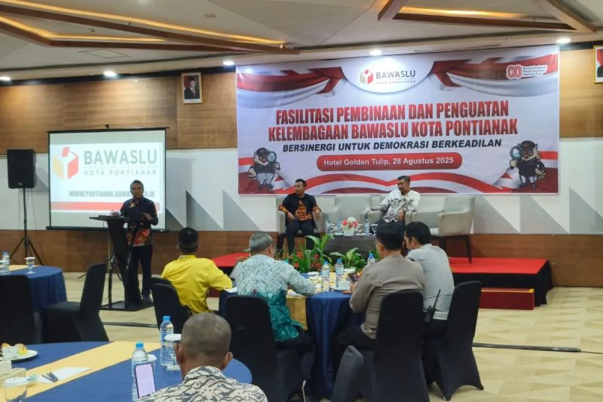 Pontianak (ANTARA) - Badan Pengawas Pemilu (Bawaslu) Kota Pontianak menyelenggarakan kegiatan fasilitas pembinaan dan penguatan kelembagaan dengan tema bersinergi untuk demokrasi berkeadilan” pada Kamis (28/8/2025).