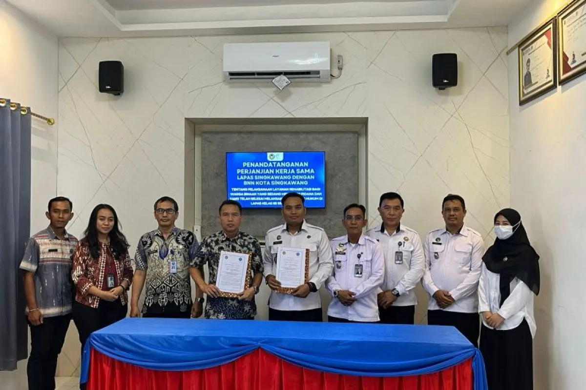 Singkawang (ANTARA) - Lapas Kelas IIB Singkawang bersama BNN Kota Singkawang menandatangani perjanjian kerja sama terkait pelaksanaan layanan rehabilitasi bagi warga binaan, Jumat (29/8).