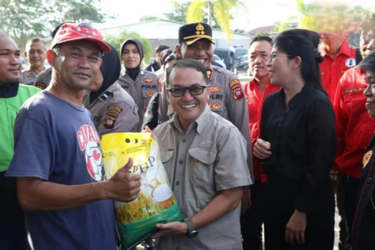 Dia juga berkesempatan untuk menyerahkan bantuan berupa beras SPHP ukuran 5 kilogram tersebut untuk setiap pengemudi ojek online yang hadir sebagai bentuk perhatian dan dukungan.