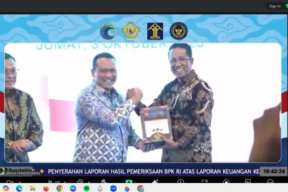 Pontianak (ANTARA) - Kantor Wilayah Kementerian Hukum Kalimantan Barat mengikuti kegiatan Penyerahan Laporan Hasil Pemeriksaan (LHP) BPK RI atas Laporan Keuangan Kementerian Hukum dan HAM Tahun 2024 yang berlangsung di Ruang Rapat Yassona. Kegiatan ini dihadiri oleh Kepala Kantor Wilayah Kemenkum Kalimantan Barat, Jonny Pesta Simamora didampingi Kepala Divisi Pelayanan Hukum, Farida Wahid, Kepala Divisi P3H, Zuliansyah, Kepala Bagian Umum dan TU, Ferry Indrawan serta Tim Kerja Keuangan dan Tim Kerja BMN Kanwil Kemenkum Kalbar, Jumat (3/10).
