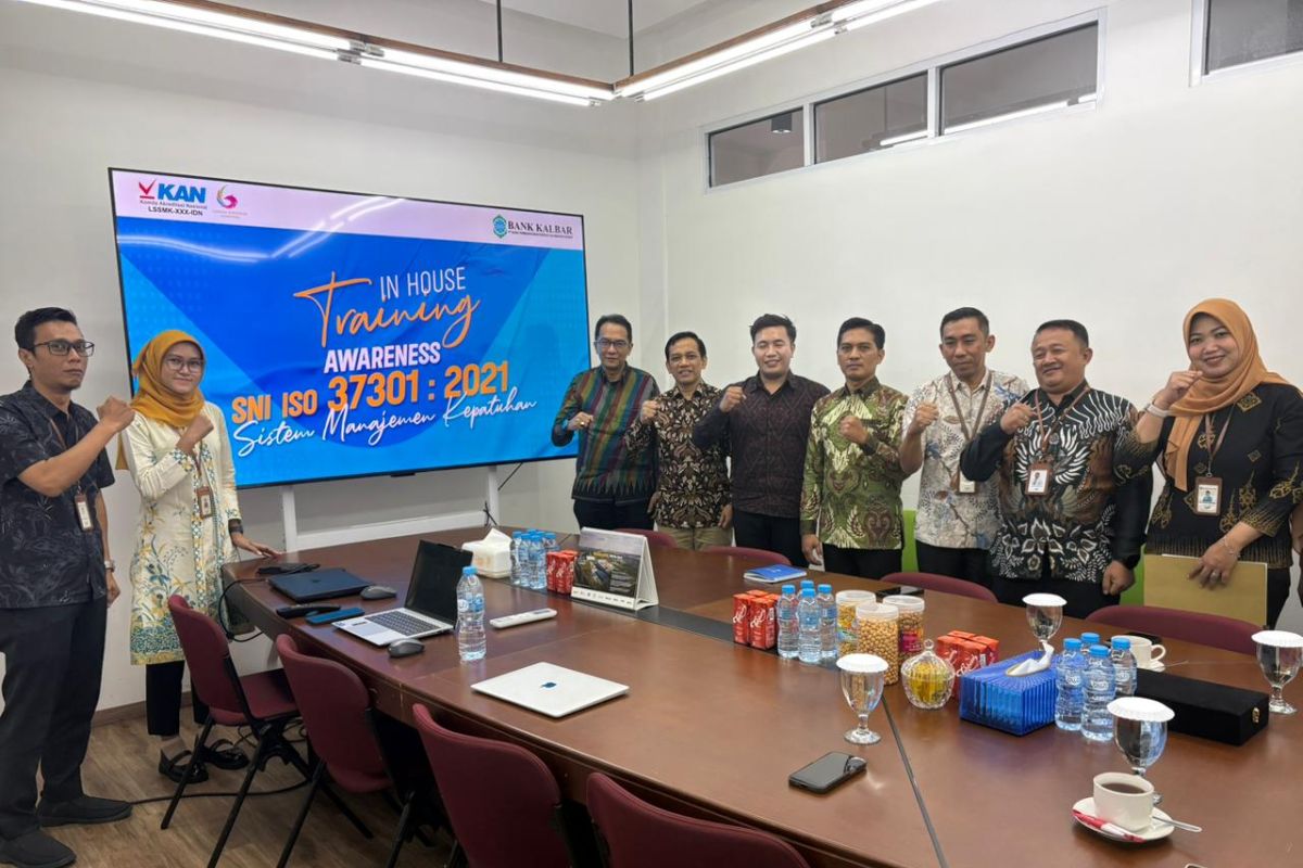 Pontianak (ANTARA) - Bertempat di ruang rapat Kantor Bank Kalbar yang berlokasi di depan A Yani Megamall, telah dilaksanakan prosesi penyerahan sertifikat asli ISO 37301:2021 tentang Sistem Manajemen Kepatuhan dan perpanjangan sertifikat ISO 37001:2016 tentang Sistem Manajemen Anti Penyuapan (SMAP) (21/10).