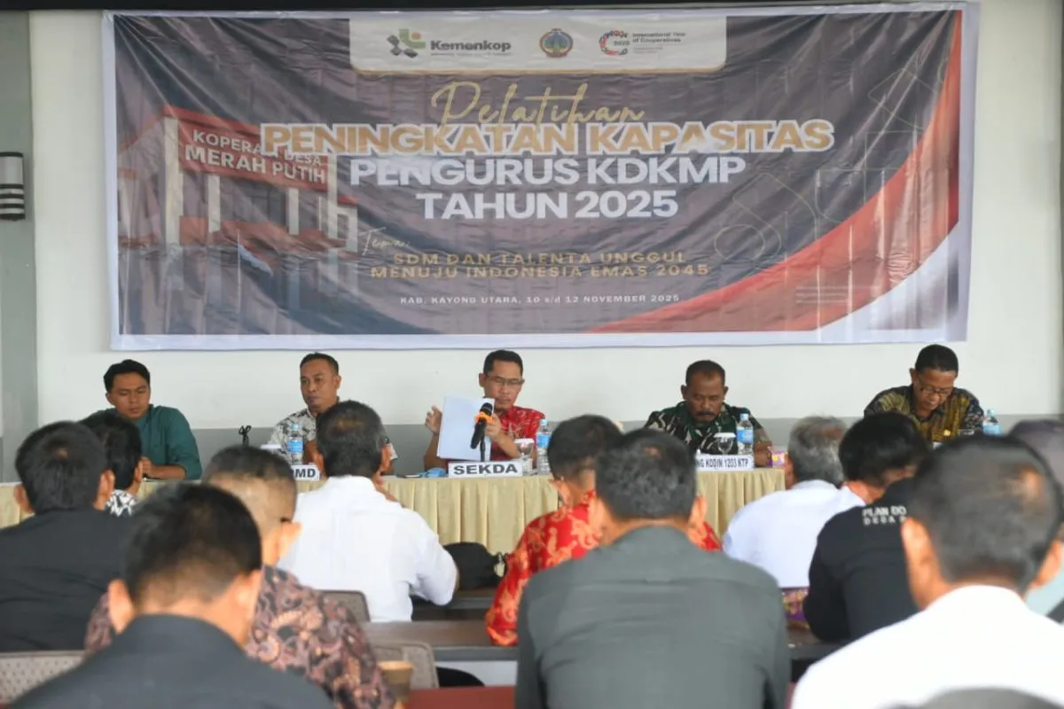 Hal ini disampaikan oleh Sekretaris Daerah Kabupaten Kayong Utara, Erwin Sudrajat, saat memimpin Rapat Koordinasi Pemetaan Lahan Desa untuk Gerai Koperasi Desa Merah Putih, yang turut dihadiri jajaran TNI, para camat, dan kepala desa se-Kabupaten Kayong Utara, Sukadana, Kamis (13/11/2025).