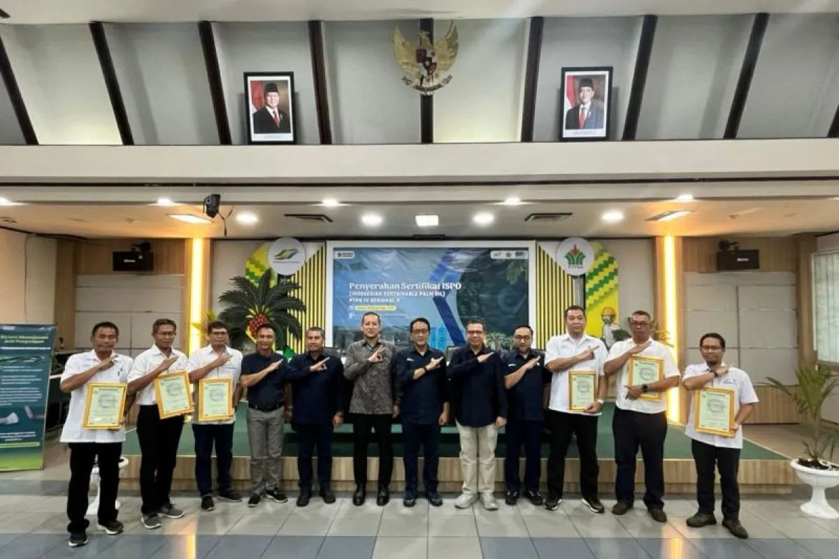 Pontianak (ANTARA) - PTPN IV Regional V meraih enam sertifikat Indonesian Sustainable Palm Oil (ISPO) untuk enam unit kerja di wilayah Kalimantan Barat (Kalbar). Momentum ini menjadi lebih istimewa karena bertepatan dengan Hari Sawit Nasional yang jatuh pada 18 November 2025. Kado Istimewa ini merupakan upaya perusahaan dalam memastikan tata kelola perkebunan yang berkelanjutan, bertanggung jawab, dan berdaya saing di tingkat nasional maupun global.