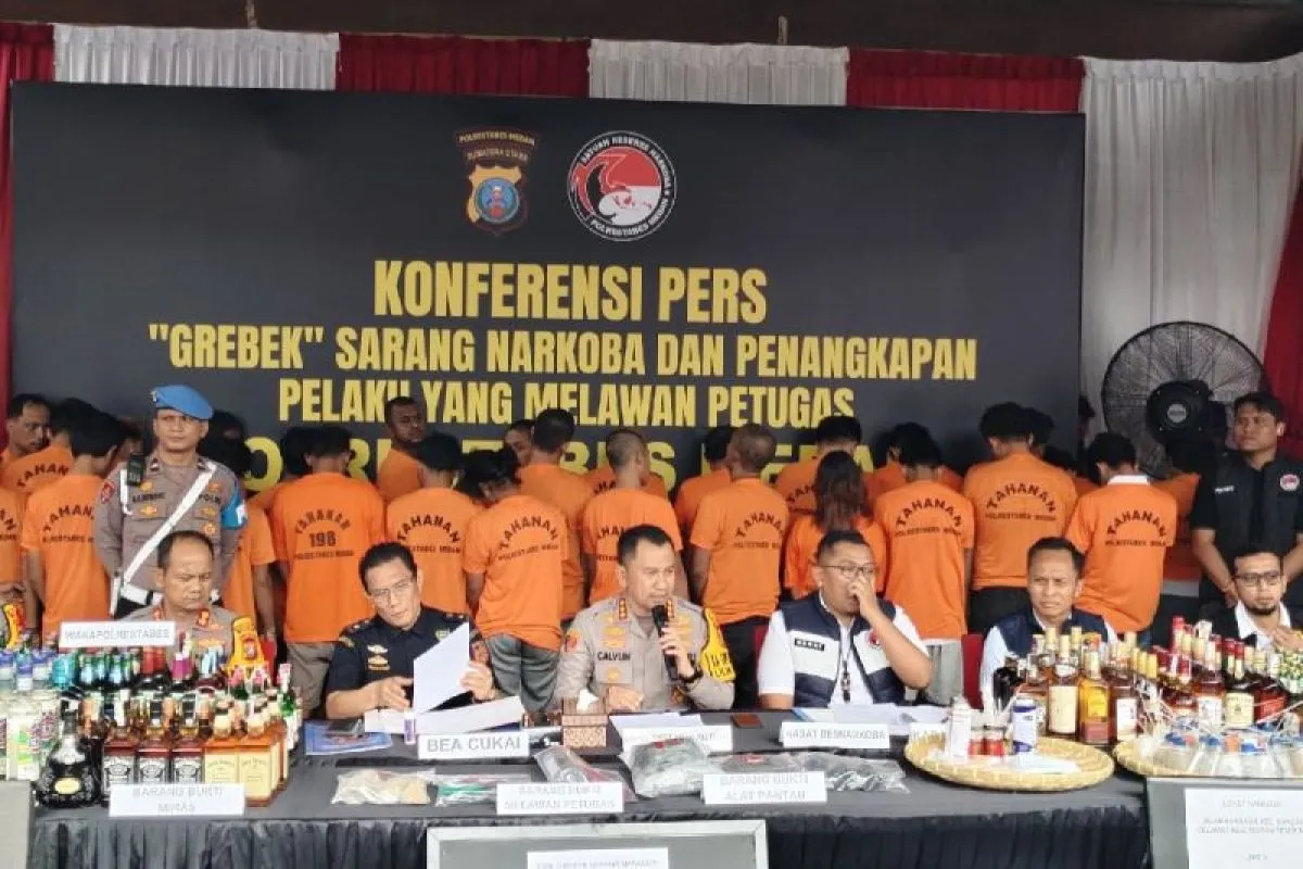 Kapolrestabes Medan Kombes Pol Jean Calvjin mengatakan 34 tersangka tersebut merupakan dari 24 kasus narkoba yang berhasil diungkap kepolisian setempat.