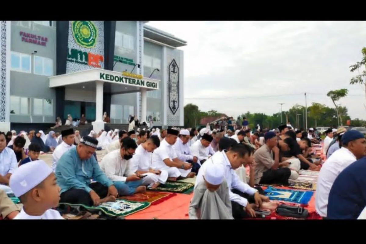 Pelaksanaan Shalat Idul Fitri di Kampus II UMPR ini menjadi salah satu lokasi shalat yang pelaksanaannya mendahului sehari dibandingkan dengan yang ditetapkan pemerintah.