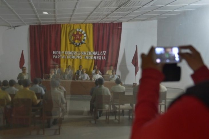 Pengunjung dengan ponselnya mengabadikan diorama PKI ketika mengunjungi Museum Lubang Buaya, Jakarta, Sabtu (223/8). Museum sejarah yang menceritakan peristiwa pemberontakan Gerakan 30 September PKI itu menjadi tujuan wisata yang cukup diminati masyarakat Jakarta dan sekitarnya. ANTARA FOTO/Saptono/Spt/14
