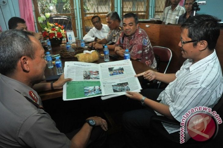 Kapolda Kalbar, Brigjen (Pol) Arief Sulistyanto beserta pejabat utama Polda Kalbar melakukan kunjungan kerja ke Kantor Biro Antara Kalbar di Jalan Johar, Pontianak, Senin (26/1). ANTARA/Jessica Helena Wuysang/15
