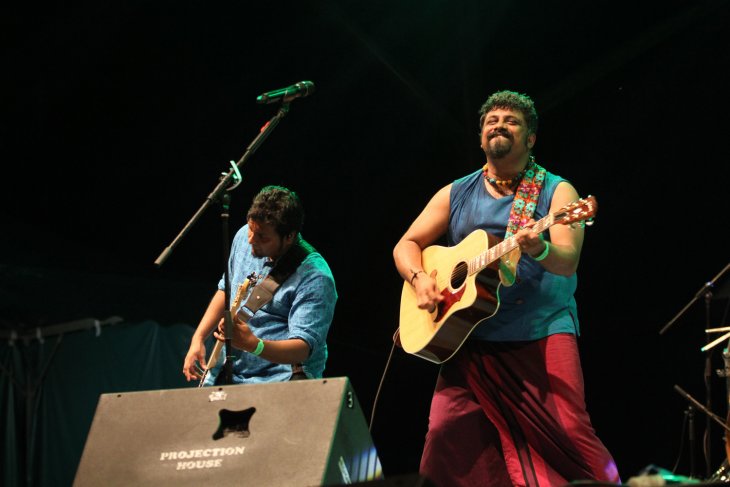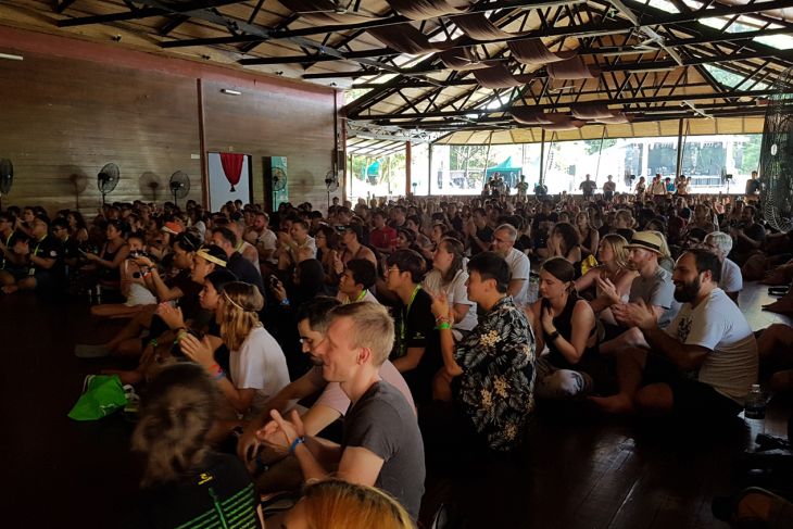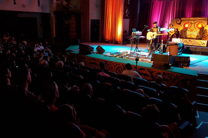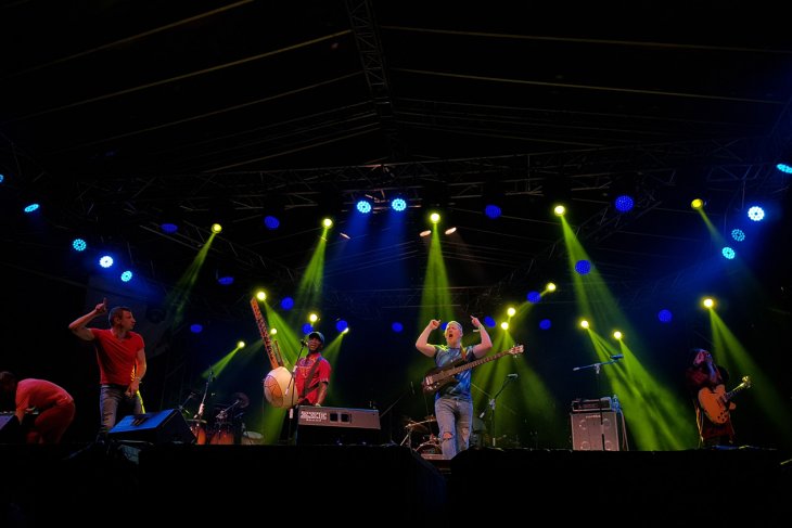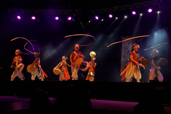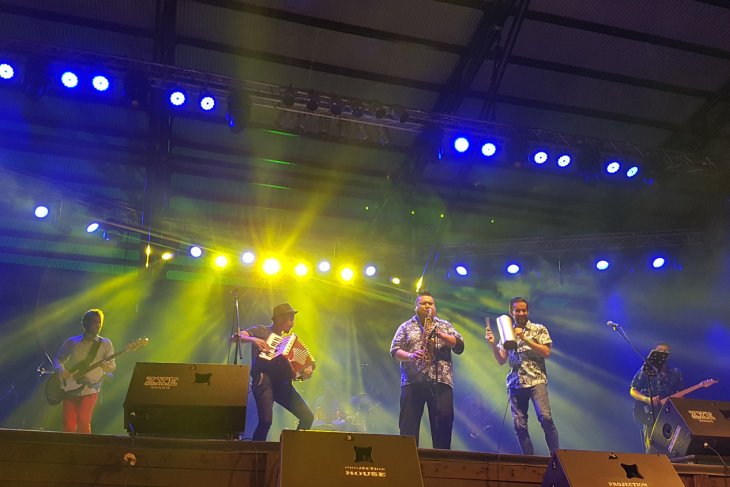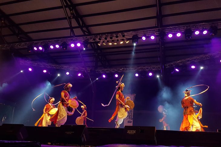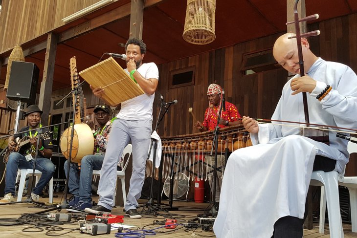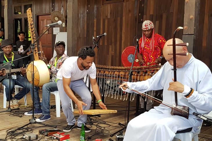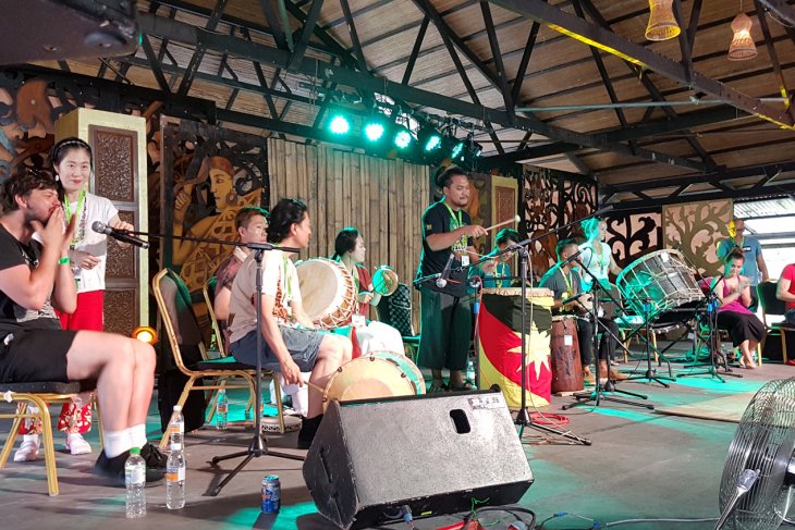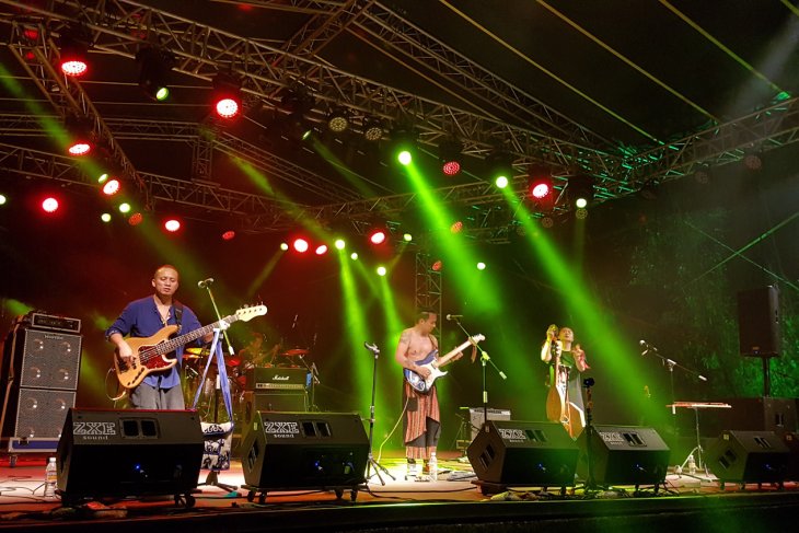 Sejumlah kelompok musik tampil pada pertunjukan Rainforest World Music Festival 2018 di kawasan Sarawak Culture Village, Kuching, Malaysia, Juli 2018. RWMF 2018 yang digelar Sarawak Tourism Board tersebut, menampilkan 27 musisi/kelompok musik dari sejumlah negara. ANTARA FOTO/Jessica Helena Wuysang/18