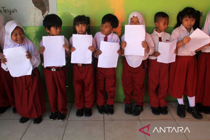 Sejumlah pelajar memegang dokumen kependudukan saat menunggu giliran perekaman data oleh petugas Disdukcapil Kota Pontianak di Sekolah Dasar Negeri (SDN) 10 Pontianak Utara, Kalimantan Barat, Selasa (20/5/2025). Sebanyak 118.557 anak atau 63,45 persen dari total anak di Kota Pontianak telah memiliki Kartu Identitas Anak (KIA) melalui program Pelayanan Cetak Kartu Identitas Anak Sehari Jadi (PECI HAJI) yang menyasar anak usia sekolah dengan sistem jemput bola di sekolah maupun di ruang publik. ANTARA FOTO/Jessica Wuysang