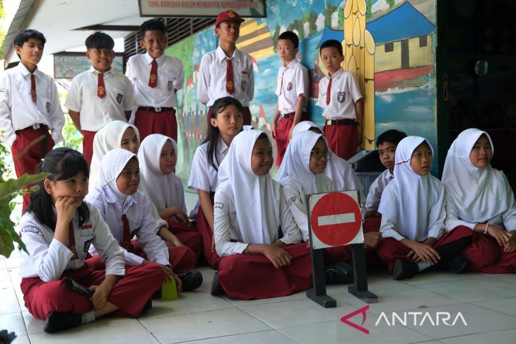 Sejumlah pelajar menunggu giliran perekaman data oleh petugas Disdukcapil Kota Pontianak di Sekolah Dasar Negeri (SDN) 10 Pontianak Utara, Kalimantan Barat, Selasa (20/5/2025). Sebanyak 118.557 anak atau 63,45 persen dari total anak di Kota Pontianak telah memiliki Kartu Identitas Anak (KIA) melalui program Pelayanan Cetak Kartu Identitas Anak Sehari Jadi (PECI HAJI) yang menyasar anak usia sekolah dengan sistem jemput bola di sekolah maupun di ruang publik. ANTARA FOTO/Jessica Wuysang
